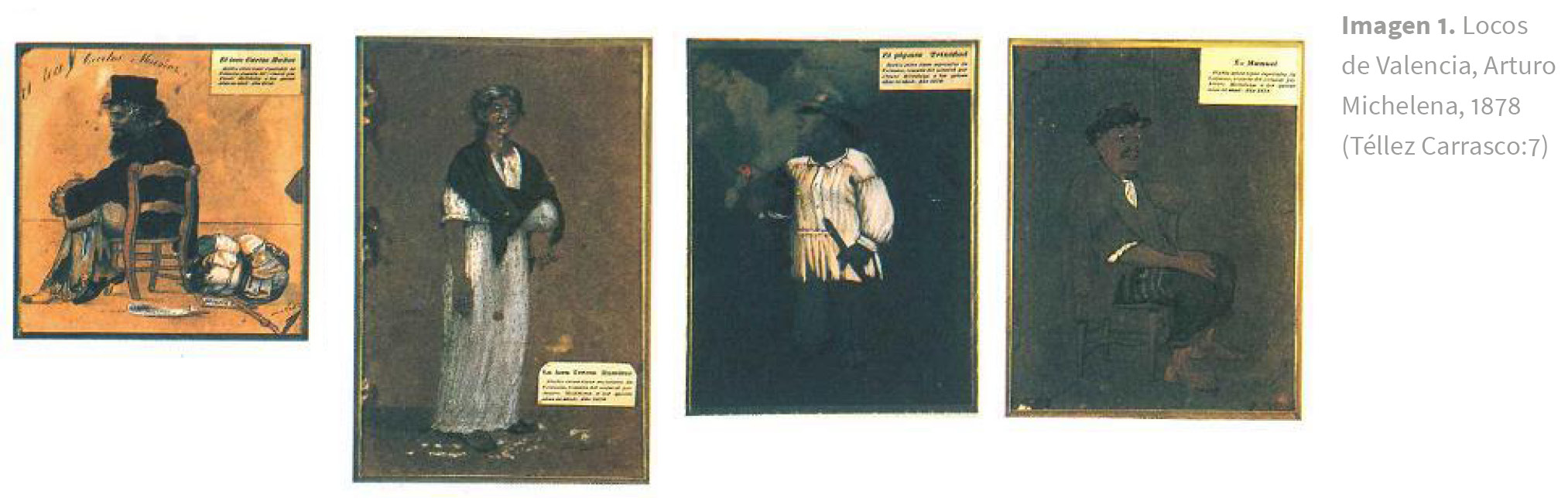 Así como narra la necesidad de agradecer a los pacientes y de incluirlos en una especie de memoria breve, Téllez Carrasco también hace hincapié en la relación entre arte y locura que, según lo expuesto en páginas anteriores, ha representado un punto importante en la historia de la psiquiatría de la región. Sobre esto, el autor inicia con un llamado de atención a la obra del pintor valenciano Arturo Michelena (1863–1898), quien hacia 1878 creó una serie de acuarelas titulada «Los locos de Valencia»; colección que resulta contrastante dentro de la obra de este pintor reconocido y consagrado por sus representaciones sobre personajes heroicos de la Venezuela del siglo XIX. Sobre esta serie en particular, Carlos Rojas Malpica en su «Bosquejo histórico de la Psiquiatría en Carabobo», señala: