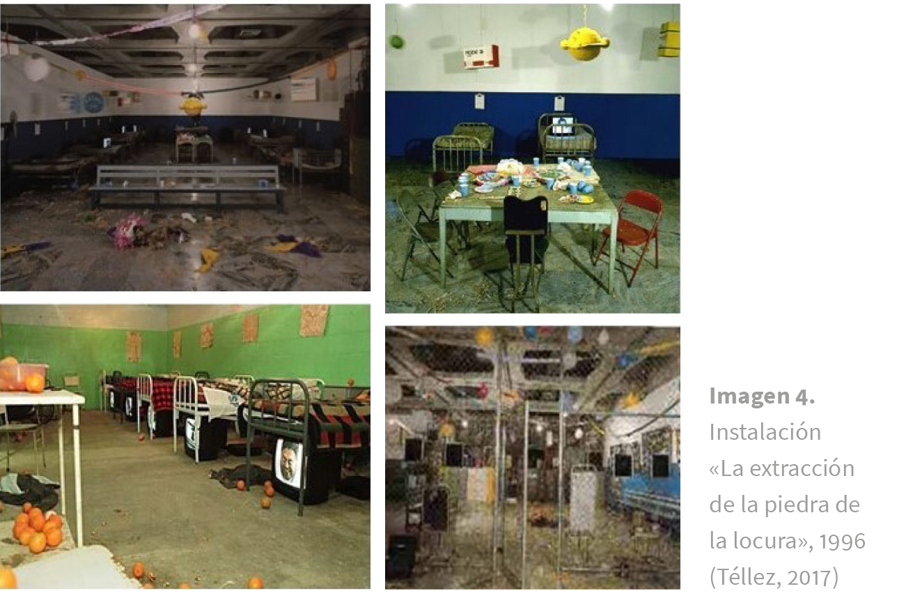 El segundo aspecto a resaltar es que en el año 1996 el artista Javier Téllez —hijo de Pedro Téllez Carrasco, cuyo trabajo ha tenido un acento importante en el tema de la locura y de los dispositivos psiquiátricos— expuso en el Museo de Bellas Artes de Caracas y en el Ateneo de Valencia La extracción de la piedra de la locura; instalación que recreaba, a través del videoarte y de la intervención del museo, los espacios y el funcionamiento del Hospital Psiquiátrico de Bárbula. Al respecto, Carmen Hernández escribe en el catálogo de la instalación: