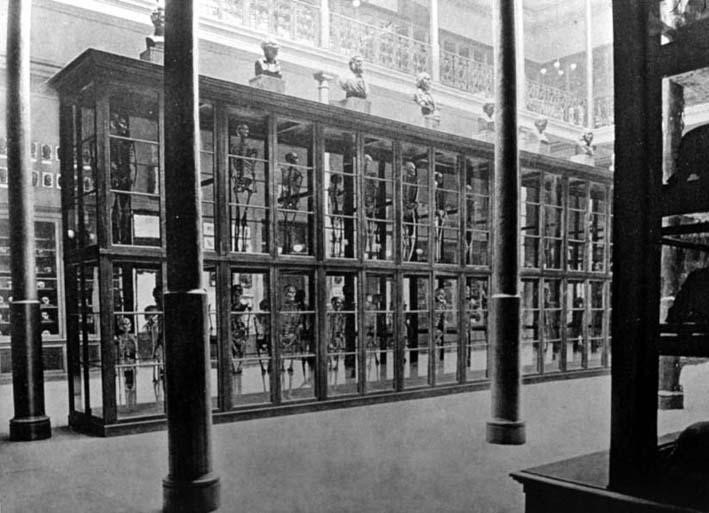 La muestra central en la inauguración del museo, en 1887, constaba de decenas de esqueletos y centenares de cráneos que formaban parte de un guión que presentaba a los visitantes la historia natural de la especie humana.